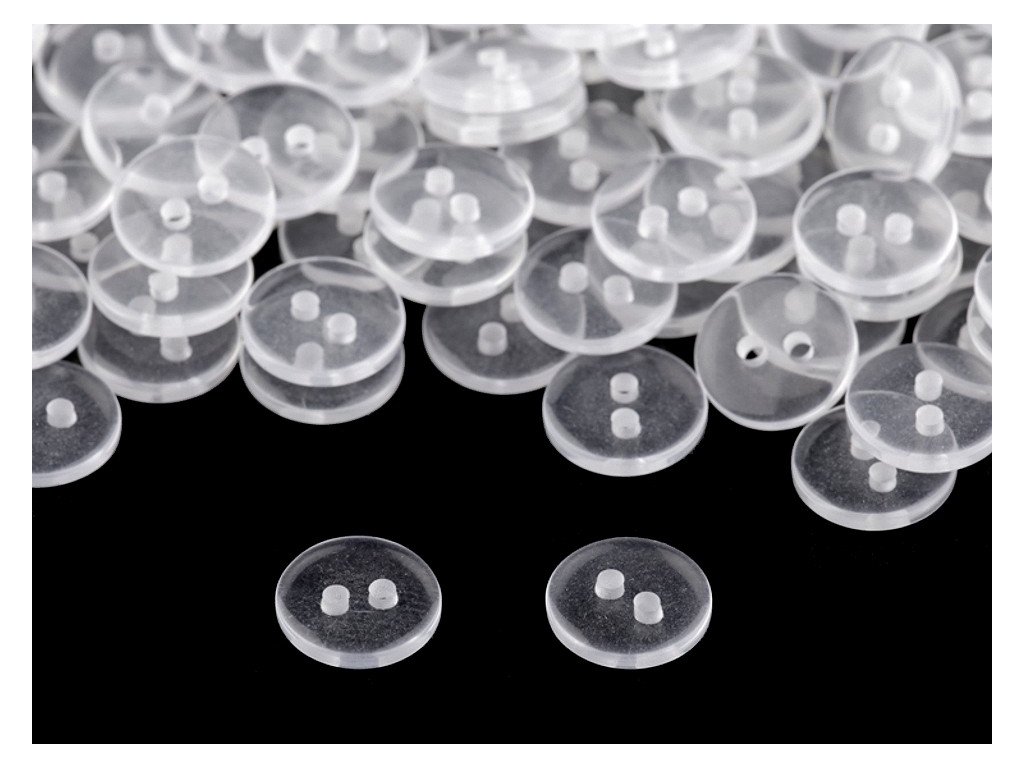Transparentné dvojdierkové gombíky sú vhodné ako zapínanie na košele, svetre, šaty i vankúše. Dajú sa použiť tiež ako proti kus. Majú guľatý tvar.