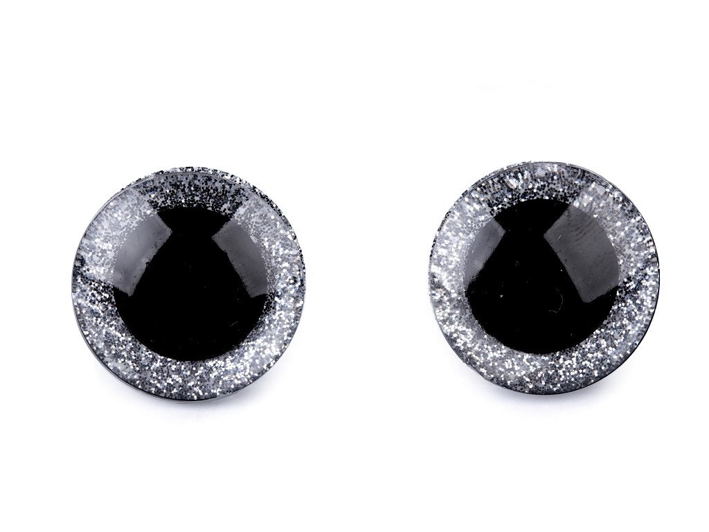 Oči glitrové s poistkou Ø25mm strieborné
