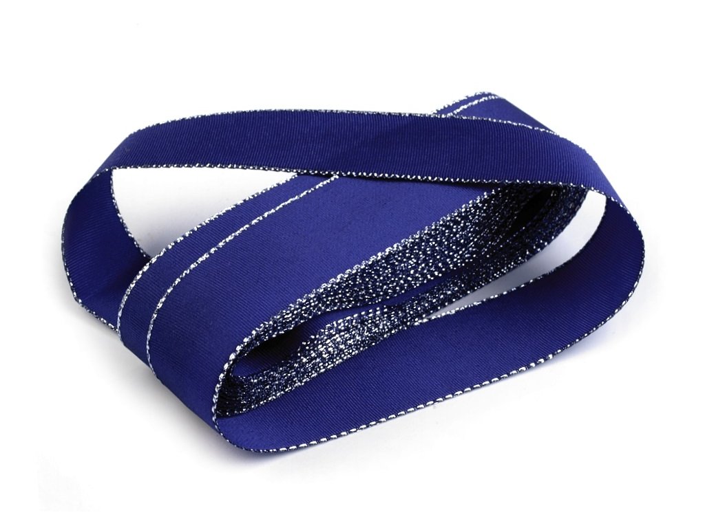 Taftová stuha s lurexom 40mm/10m modrá - strieborná 417