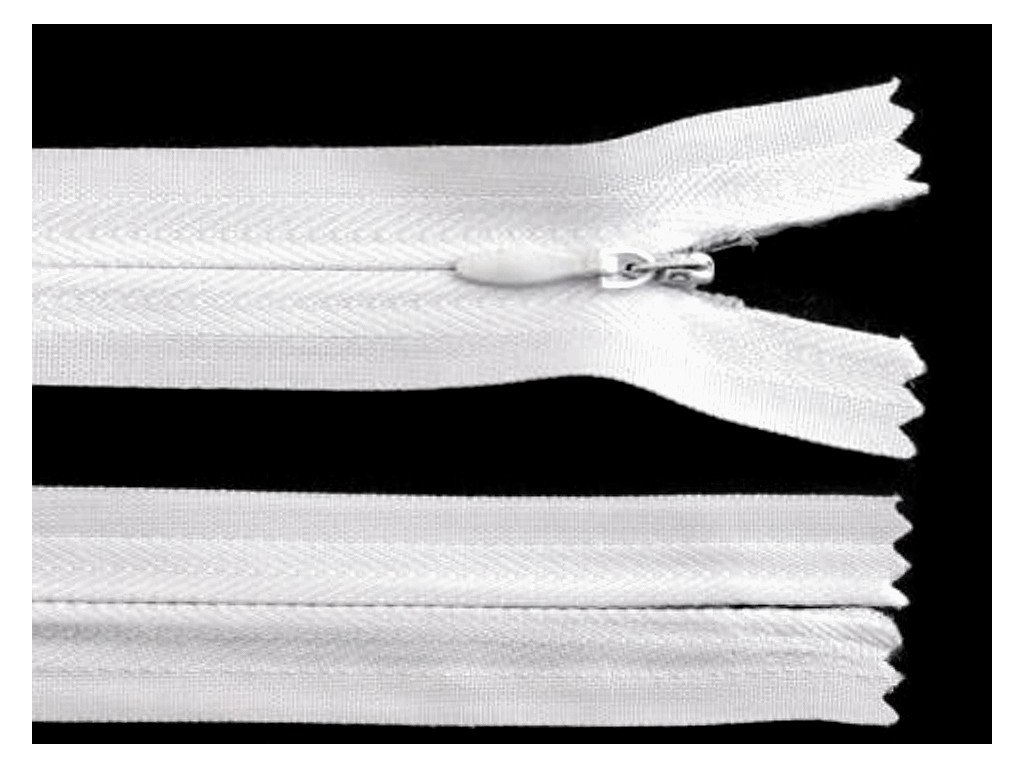 Špirálový nedeliteľný zips je vďaka zakrytiu špirály po našití prakticky neviditeľný.